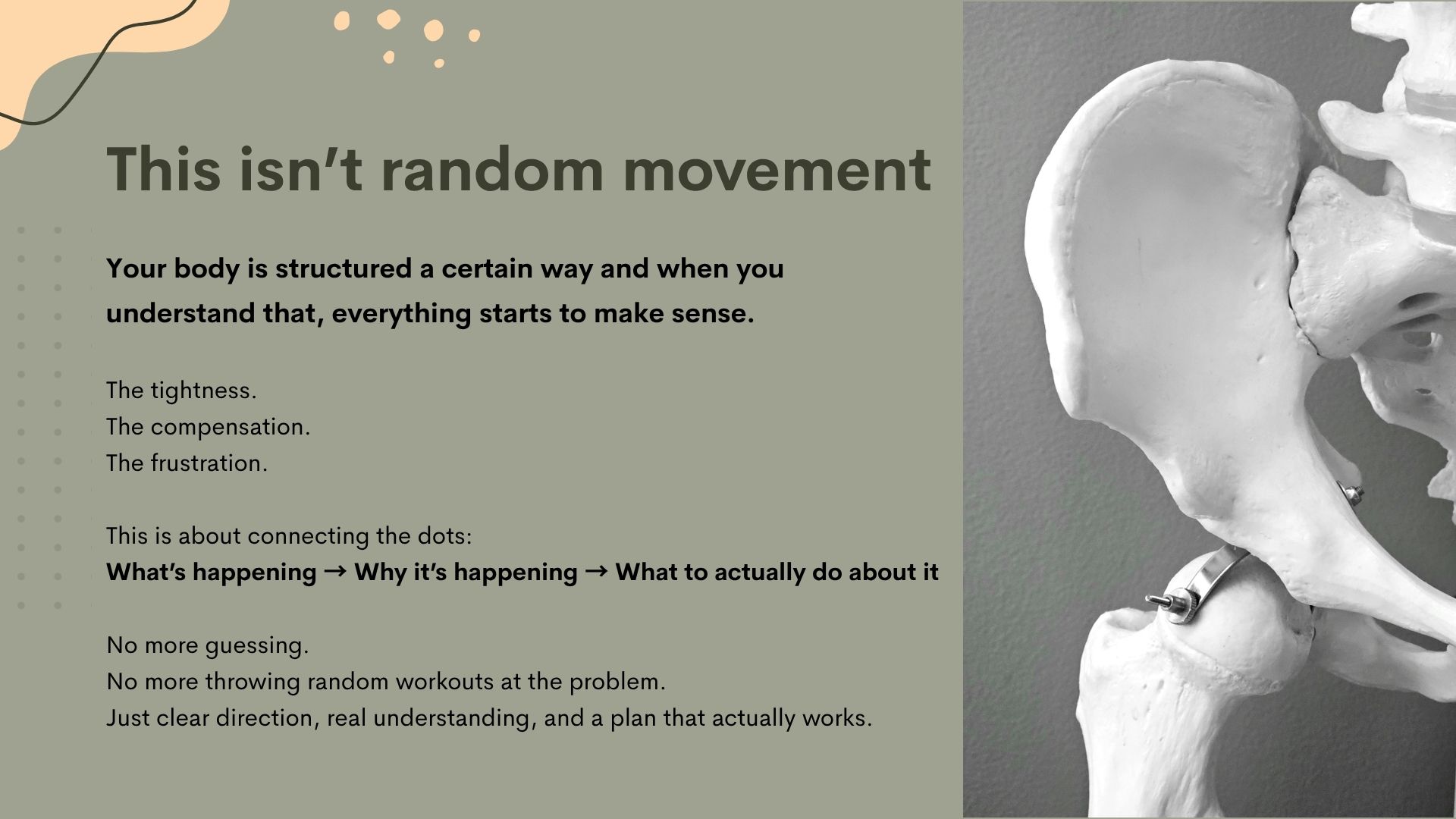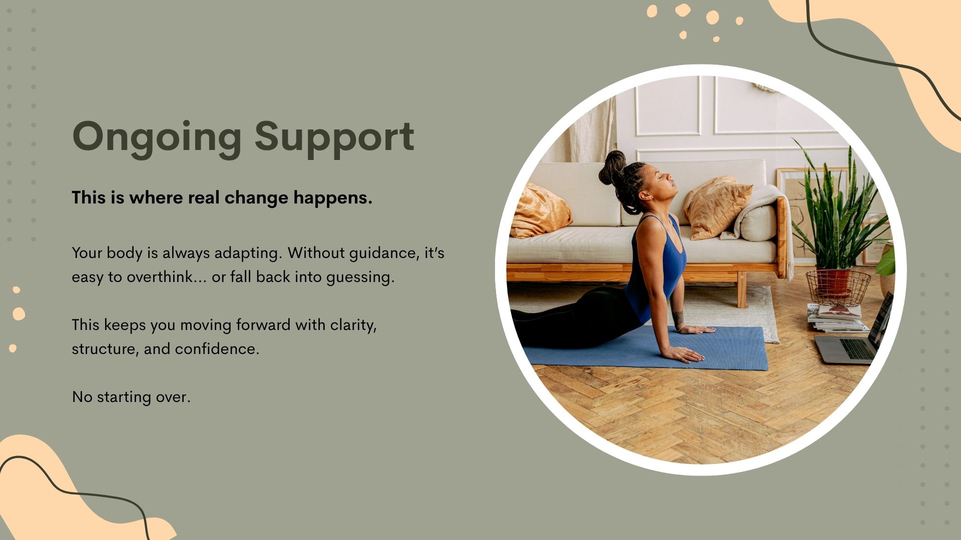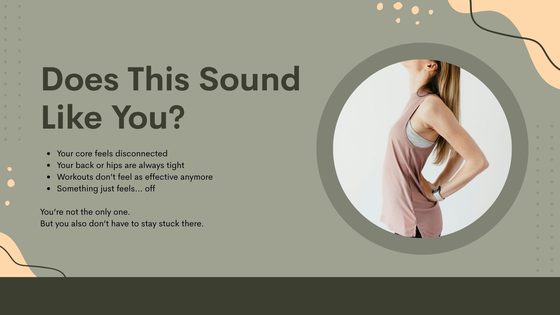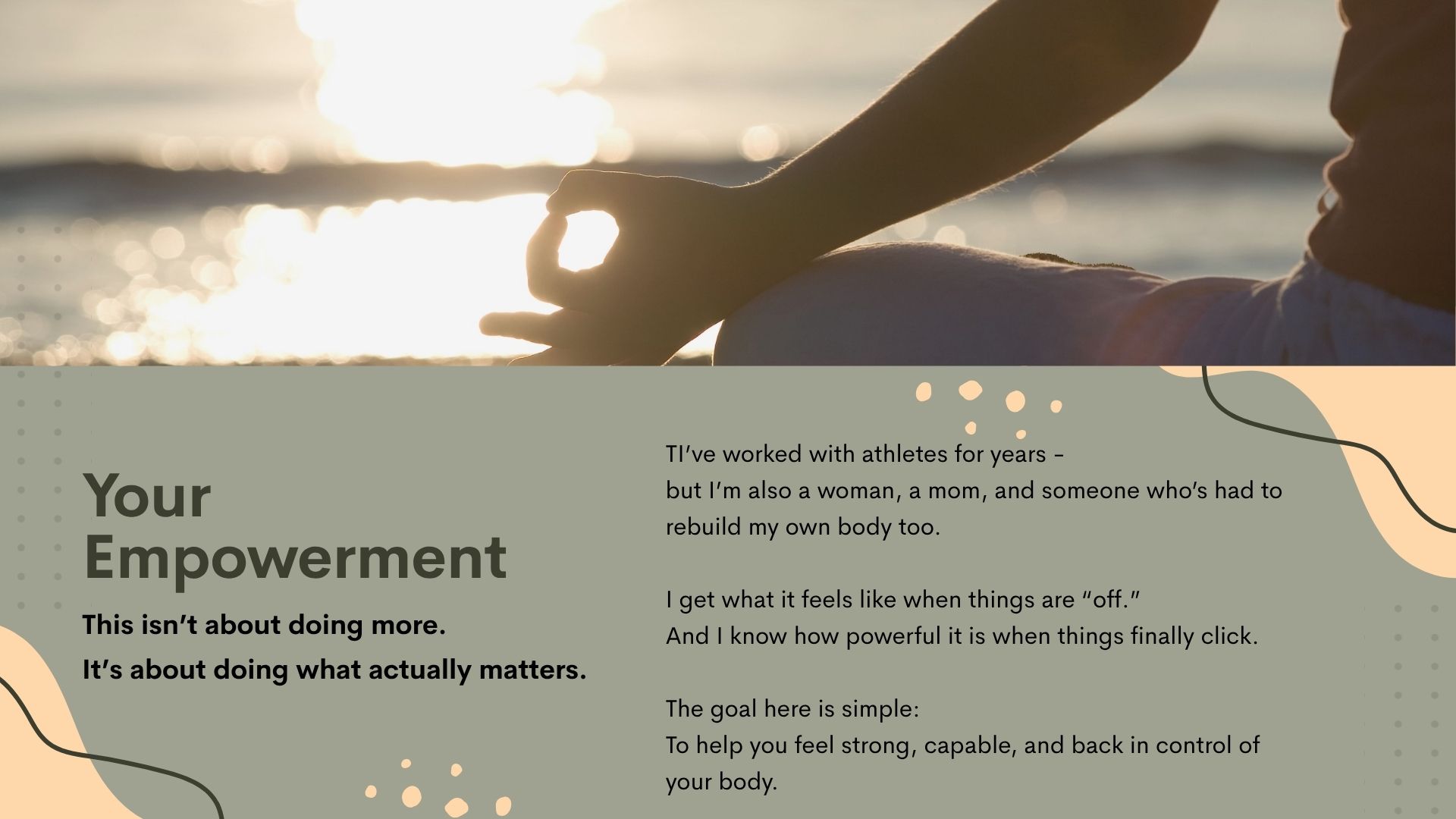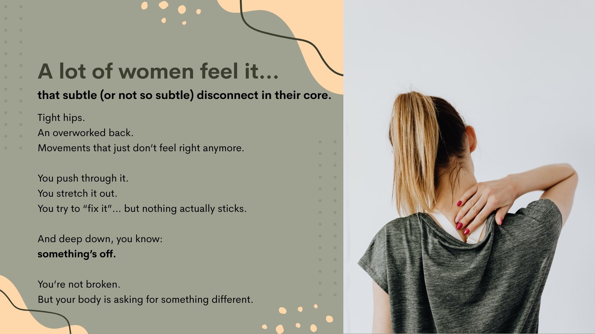 Most women are never shown how to truly rebuild and reconnect with their body. I focus on education, movement quality, and clear next steps you can actually use.